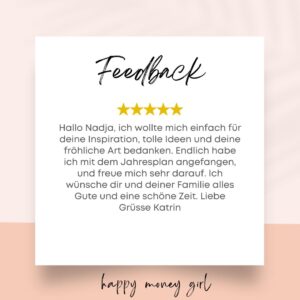 Feedback – Hallo Nadja, ich wollte mich einfach für deine Inspiration, tolle Ideen und deine fröhliche Art bedanken. Endlich habe ich mit dem Jahresplan angefangen, und freue mich sehr darauf. Ich wünsche dir…