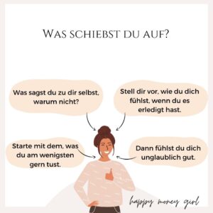 Wenn du Dinge vor dich herschiebst. Frag dich, warum schiebst du es vor dir her?Ist es nicht wichtig? Hast du keine Lust dazu? Willst du es nicht?Finde dein Warum heraus? Dann entscheide, ok…